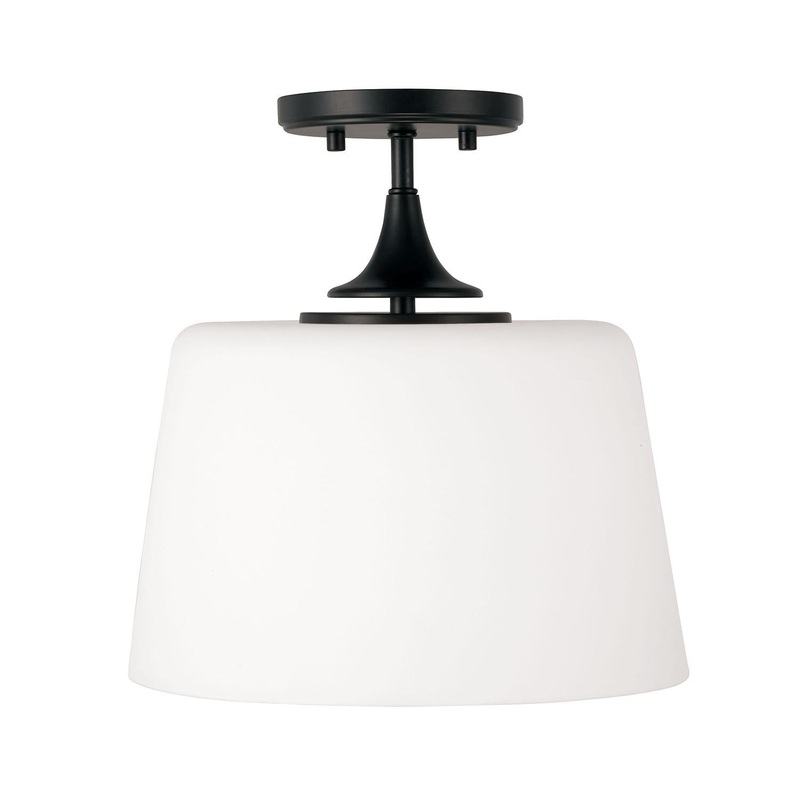 Sleek contours and flared accents create the Presley Dual Mount Semi-Flush Pendant for HomePlace. The soft white glass paired with Matte Black finish brings a classic aesthetic that mixes with any style.