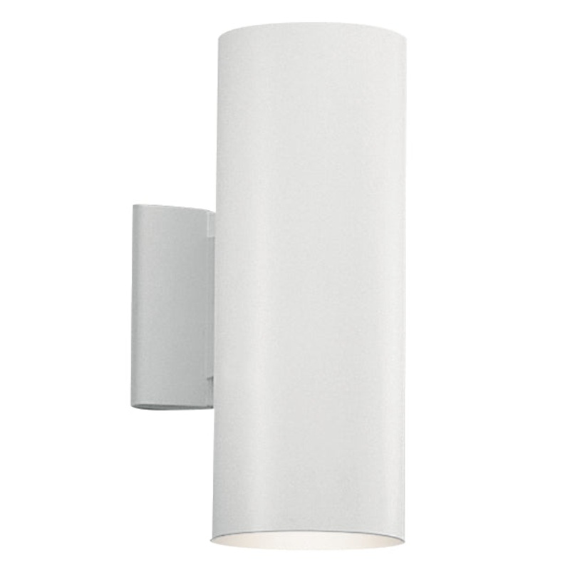 This Wall Cylinder features a unique two light design that shoots light both up and down your walls. It includes our White finish and uses BR-30 bulbs which produce 65-watts (max.) of pure light. It measures 12" high and is U.L. listed for damp location.De
